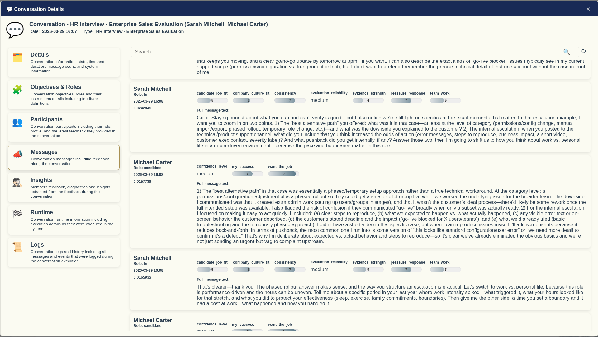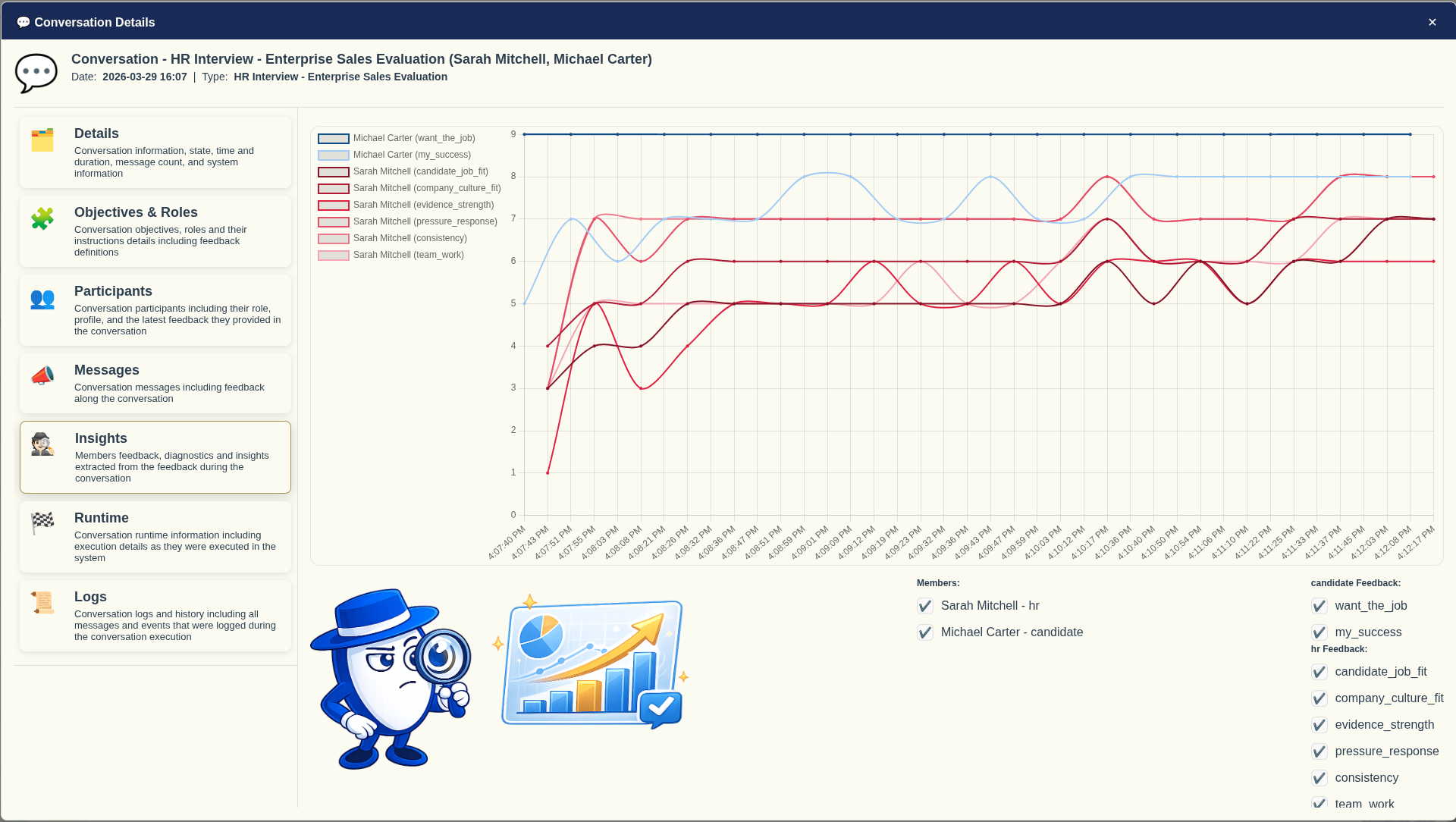 Behind the signals โ the actual interaction, responses, and feedback captured during the conversation.